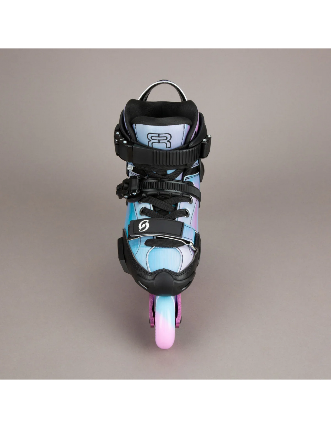 La finitura iridescente HOLO Blue/Pink fa risaltare lo SPIN JI. Con i suoi toni vibranti e colorati, è un favorito garantito tra i bambini che vogliono brillare sui punti di pattinaggio ed essere visti.
