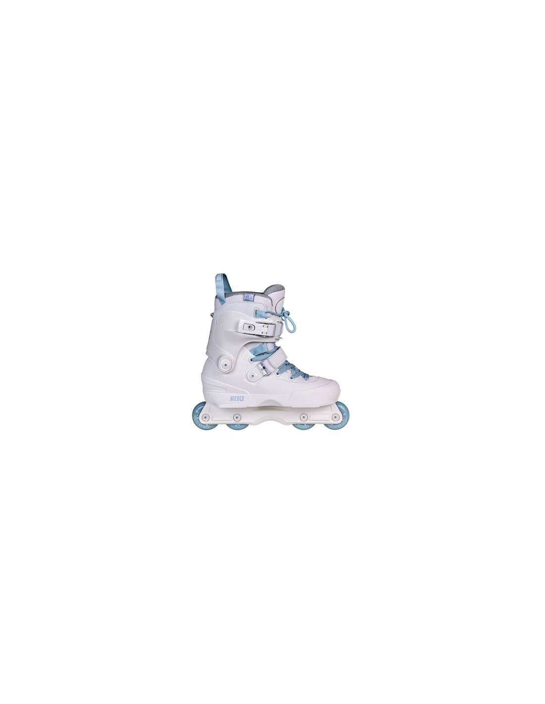 USD Aeon 60 Nicoly Pro Serenity Blue — pattini in linea aggressivi con telaio unibody, comfort Prime liner, sicurezza con fibbia a 45°, ruote da 58 mm/88A e cuscinetti WICKED ABEC 9 per i rider di strada e parck.